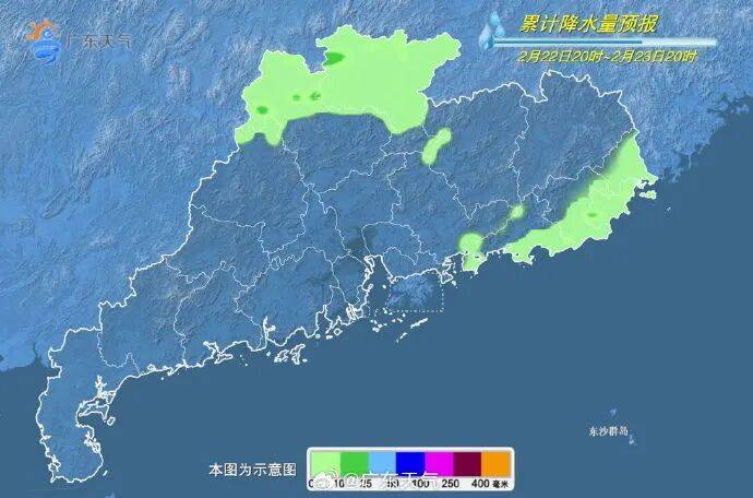 据“广东天气”发布的周边省份最新天气情况,2月22日08时到23日08时,贵州、湖南、江西中南部、广西中北部、福建中南部阴天有小到中雨局部大雨,福建北部、广西南部、江西北部和海南多云间阴天。