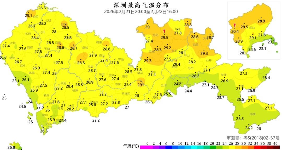 △2月22日16时全市最高气温分布
