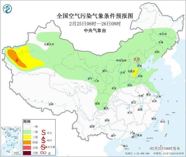 23日,受上游传输影响,区域大部有扬沙或浮尘天气。24日起,区域大气扩散条件一般,其中陕西关中地区有轻度霾。