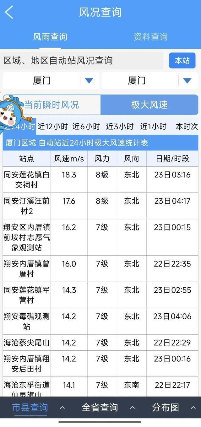 崇武到东山沿海的东北风从4级—5级增强到5级—6级、阵风7级—8级。