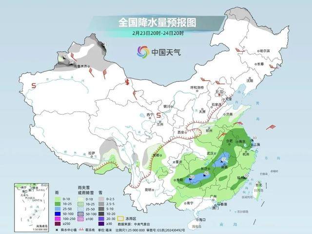 随着冷空气进一步南下,南方降雨自西向东发展增多,重庆、贵州、湖南、湖北、江西、安徽、江苏等地将有中到大雨、局地暴雨,重庆、贵州、湖南、广西等地降雨还可能会伴随着对流天气。