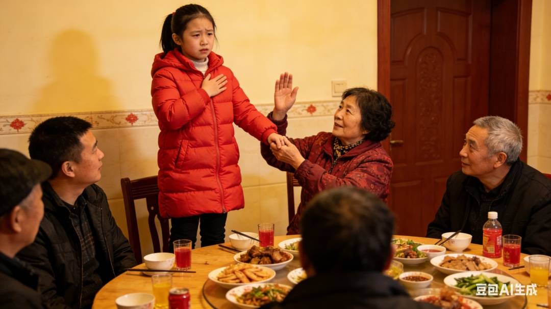 田田的委屈,要从年夜饭桌上的一句话说起。饭桌上,爸爸无意间跟奶奶分享了田田今年顺利考取中国舞十级的好消息,疼爱孙女的奶奶满心欢喜,遇到亲朋友好友就会主动分享这件事,甚至还会拉过田田,让她当场表演一段。