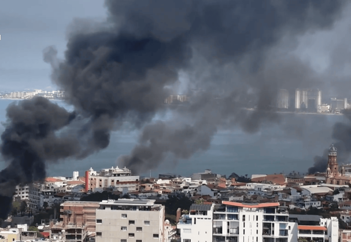 在抓捕事件发生后,这座平日里派对氛围浓厚的城市街道上空无一人。视频显示,人们惊慌失措地在瓜达拉哈拉机场奔跑,而旅游城市巴亚尔塔港上空浓烟滚滚,CJNG集团在机场、港口等关键交通枢纽纵火报复。