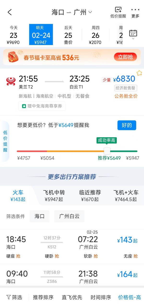 正值春节假期返程高峰,2月23日,海南离岛机票价格大涨,部分票价逼近万元,今明两天琼州海峡船票均已售罄。目前,四大航司均已增开航班,春运期间海南航班已加班超2000架次。此外,多部门还协调启用临时航路,并更换大机型,多措并举全力疏运旅客。