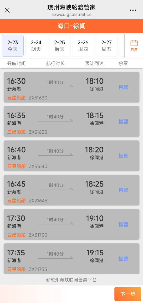 23日、24日,琼州海峡出岛船票均已显示“售罄”。