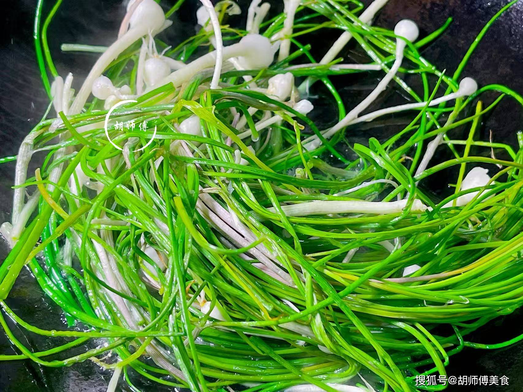 第三步:将少许食盐、鸡精放入锅中,继续大火炒半分钟即可起锅食用。因为野葱比较嫩,野葱和油直接接触,很容易变老,如果和水一起炒,野葱就不会炒老,而且还能最先限度保留野葱的香味。