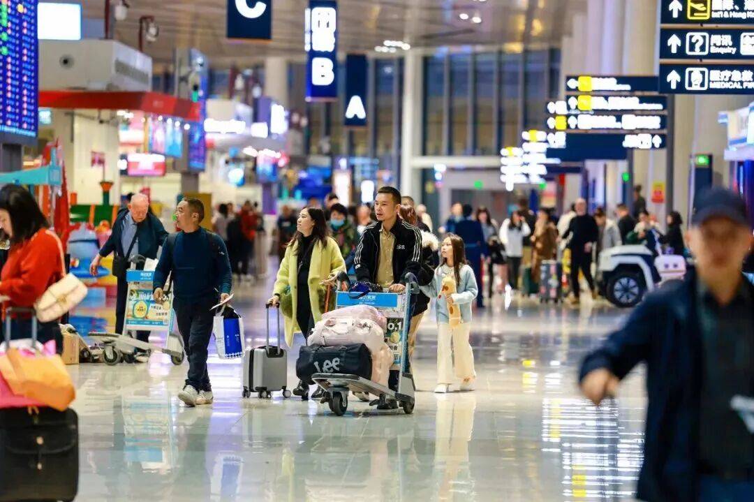 海口美兰机场航站楼内人潮涌动。图源:海口美兰机场