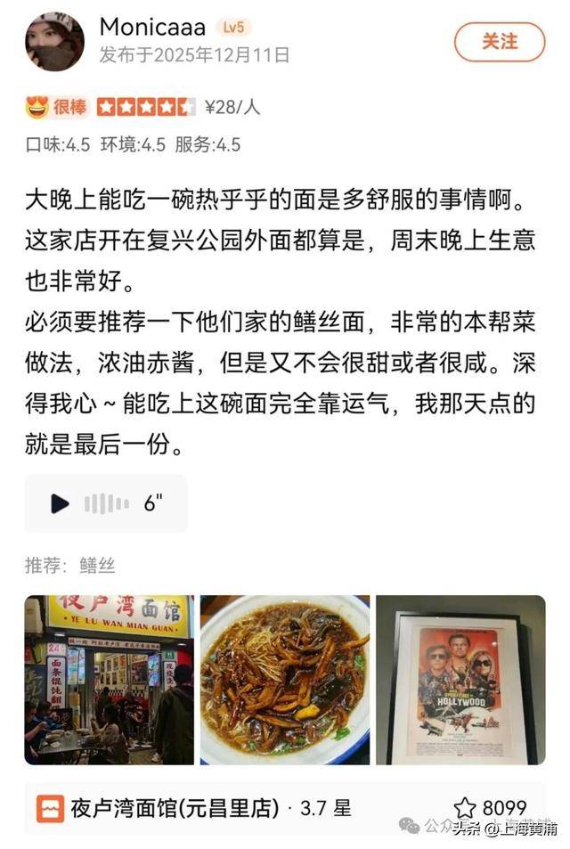 夜卢湾做的是“冷浇头”工艺——浇头提前烧好放凉,面条单独煮,保证入口爽利不糊。老白说:“我们延续的是老上海面馆的传统做法,很多客人告诉我,这味道和他们小时候吃的一模一样。”