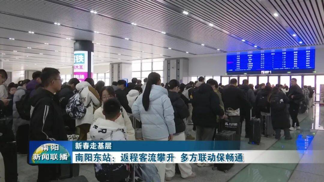 【南阳东站党支部书记 丁东:针对出行高峰,我们优化了服务保障,实时监测客流数据,确保客流有序疏导。同时灵活调整服务举措,增派现场引导人员,开设便捷通道,对重点旅客开通绿色通道专人接送,提供贴心便民服务。以高效组织、细致服务,全力守护广大旅客平安、顺畅返程。】