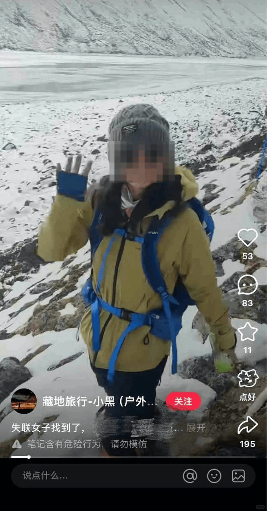 该女子获救后与救援人员合了影,但这张合影引发了部分网友和徒步爱好者的质疑,“支持救援收费”“投入了这么多人力去找她,也导致很多旅客朋友取消行程打乱规划”……