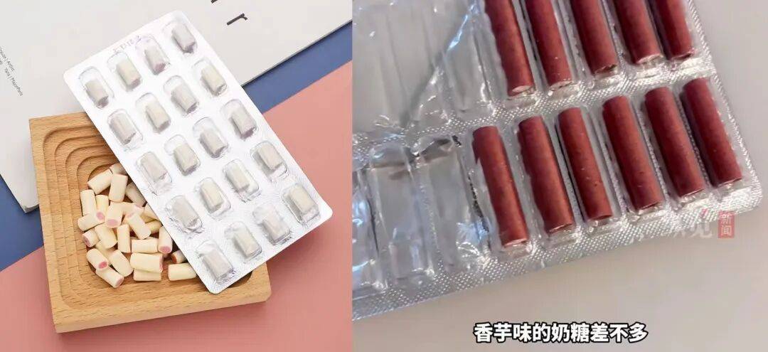 外观上看,香芋奶糖和摔炮确实存在包装相似,有网友表示颜色更像山楂糖