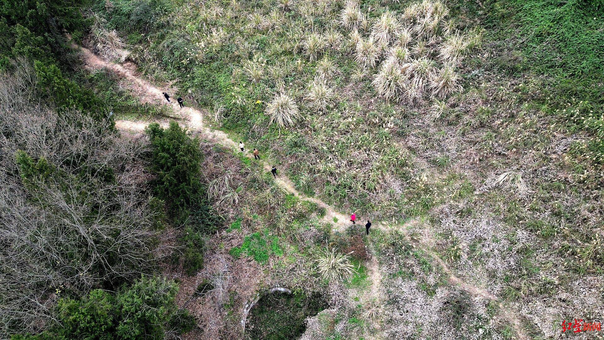 在场6人一合计,便结伴往哭声传来的地方走去。因陡峭的山壁无法直接攀爬,大家决定分成两组,一组上到半山腰往下找,一组穿过遍山荆棘枯枝的山坡,向发出哭声的地方搜寻。
