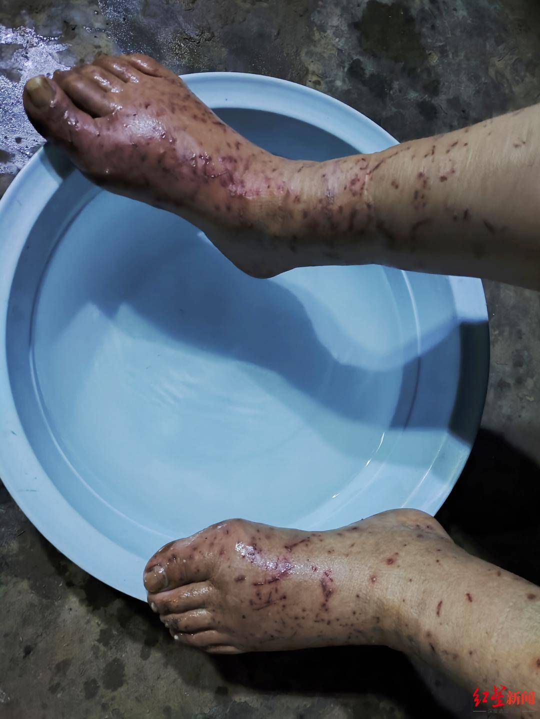 “当我站到她跟前时,发现她浑身都被荆棘划伤,伤口已经结痂,只穿了一只鞋的双脚不时在地上蹬几下,身边堆着一些树叶,外衣口袋里也装着一些树叶。”赵小玲有些心疼地说,当时想把老人扶坐起来,但老人浑身颤抖,根本坐不稳。