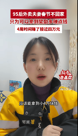 据半岛都市报报道,一对因创业身背20万元债务的“95后”年轻夫妻,春节期间不回老家,在山东青岛送外卖,4周预计能拿到4万元。