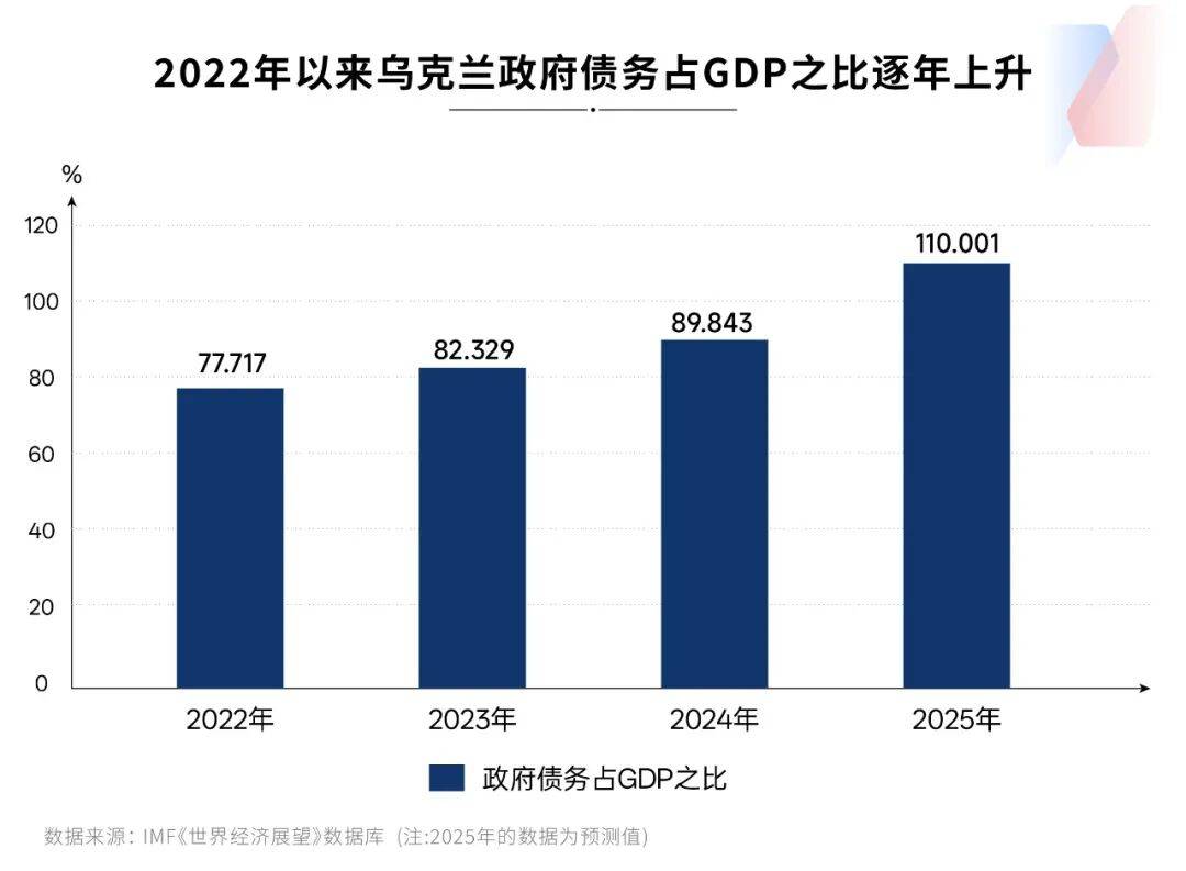 然而,长期依赖“输血”也将给乌克兰埋下致命隐患。IMF数据显示,预计乌克兰的政府债务占GDP比重将在2025年升至110%。