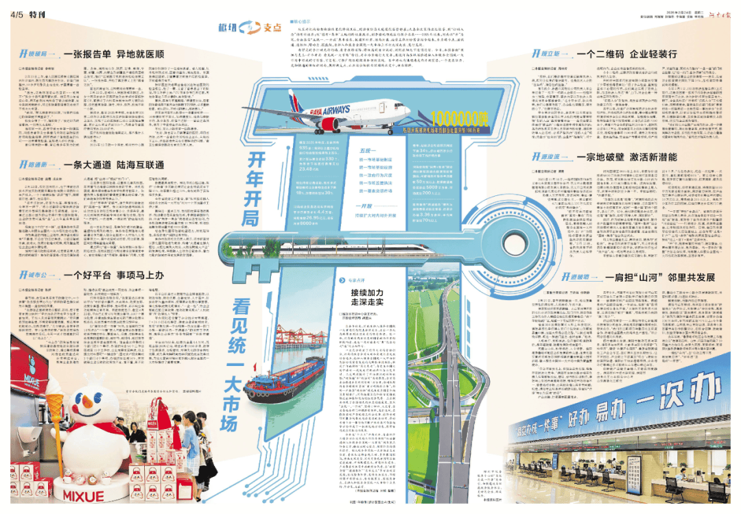 今天,马年新春开工第一天,《河南日报》以“开”为主题,推出跨版特刊,用小场景折射大变革,展现河南在纵深推进融入和服务全国统一大市场中,形成的可借鉴、可复制可推广的经验做法和创新实践。