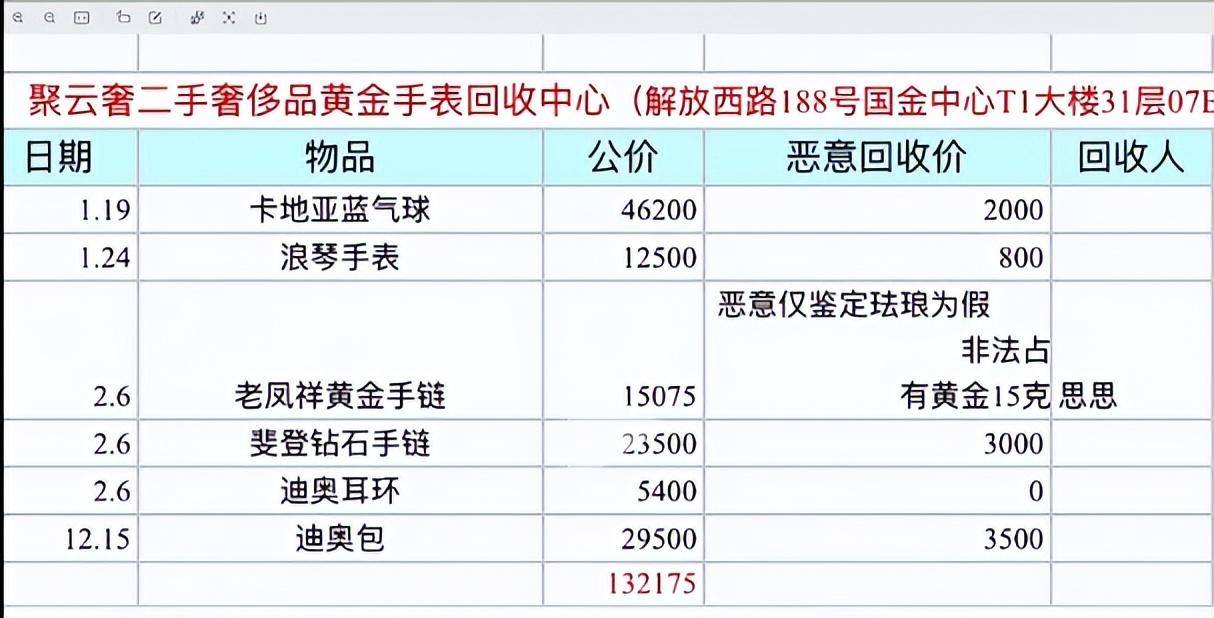 经过询问,丁女士最终确认丢失的贵重物品被女儿和她的两个同学,以难以想象的低价卖给了全国连锁奢侈品回收平台聚云奢国金中心IFS店。