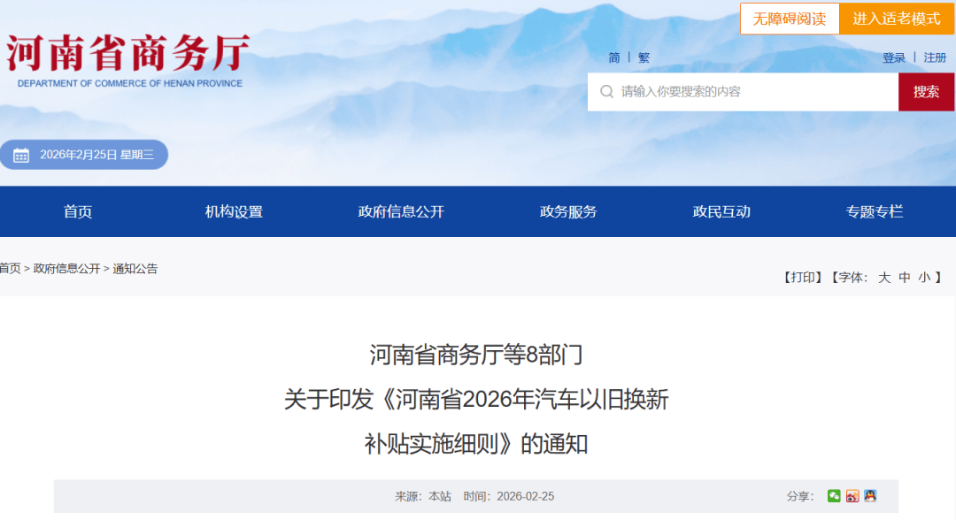 新年换新车,补贴怎么领?2月25日,省商务厅等8部门印发了《河南省2026年汽车以旧换新补贴实施细则》的通知,并发布《2026年河南省汽车以旧换新补贴问答手册》,帮助消费者快速get补贴领取相关细节。