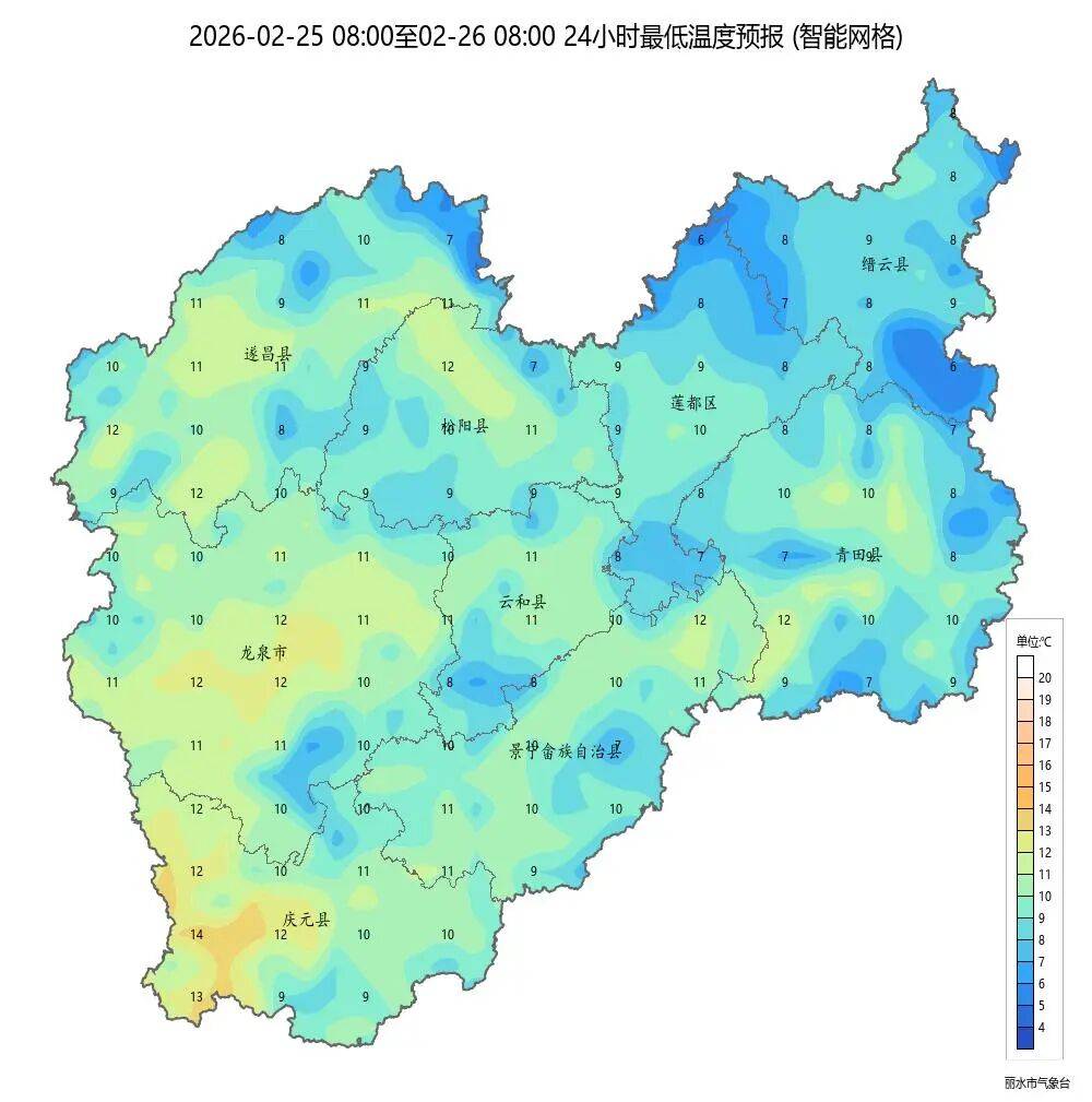 最低气温趋势:低1~2℃ 丽水明天早晨最低气温:9~10℃