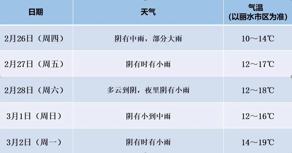 气温预报(以丽水市区为准):