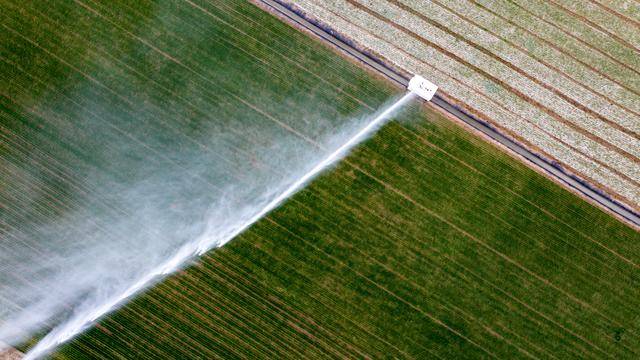 早春时节,河南省商丘市睢县各地农民抢抓农时,有序投入农事生产,田间地头一派忙碌景象。图为后台乡一处农田内,无人智能灌溉机器人正在进行水肥一体化喷灌作业。