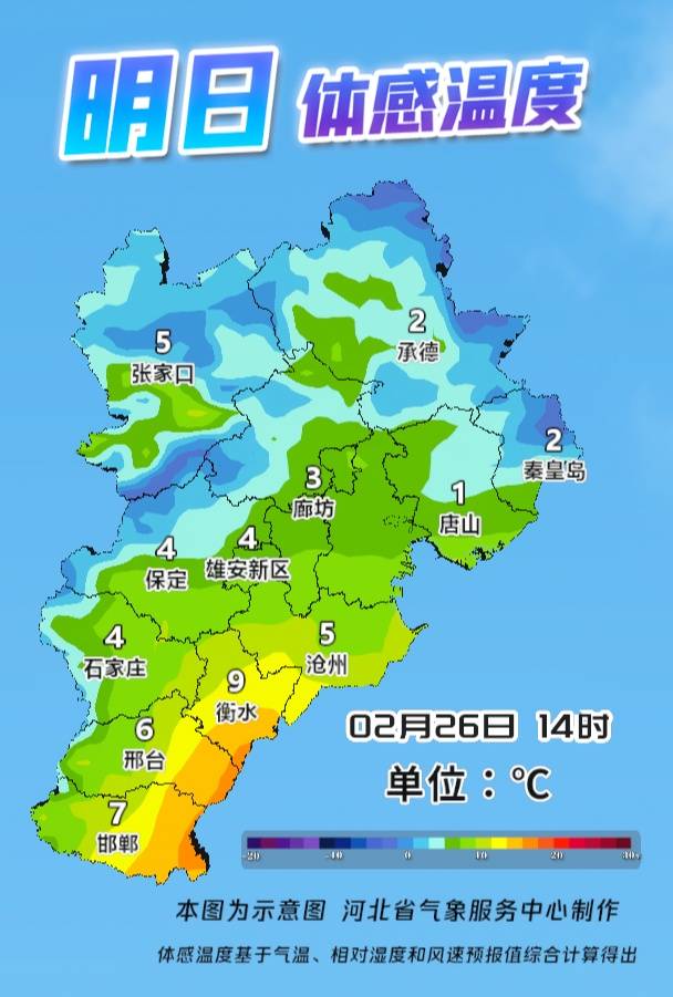 河北省气象台2026年2月25日11时发布天气预报: