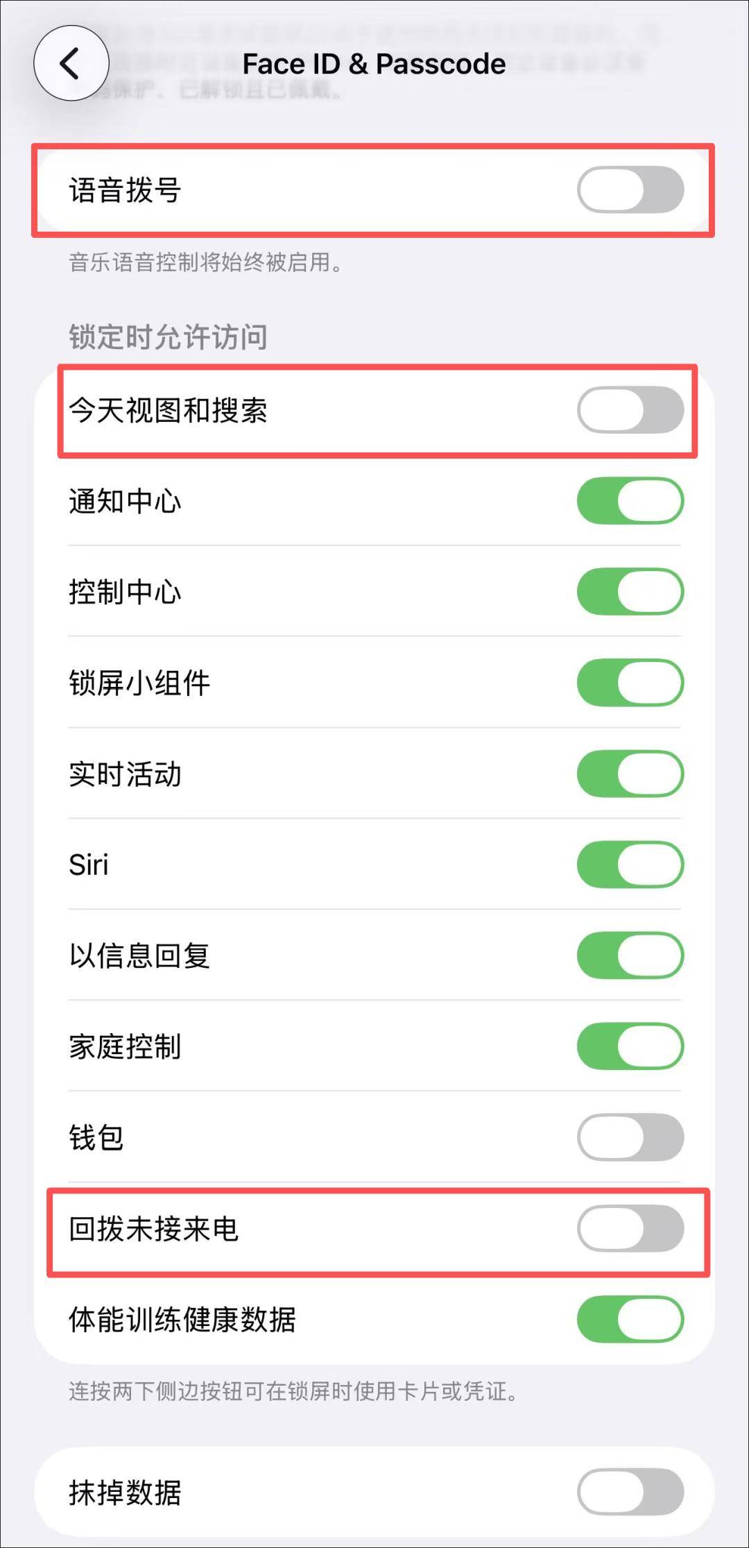 Apple专家还建议前往「设置 - 面容 ID 与密码」界面,关闭以下几个选项,如果还是异常,可再联系升级到工程部调查。