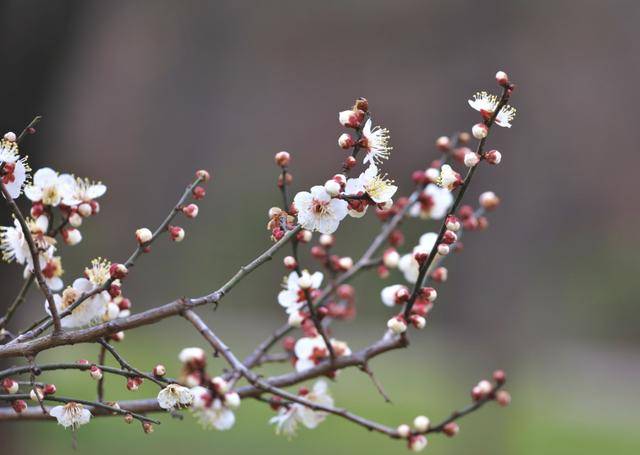 这里的梅树多为本土品种,以红梅和白梅为主,树龄较长,枝条虬曲苍劲。