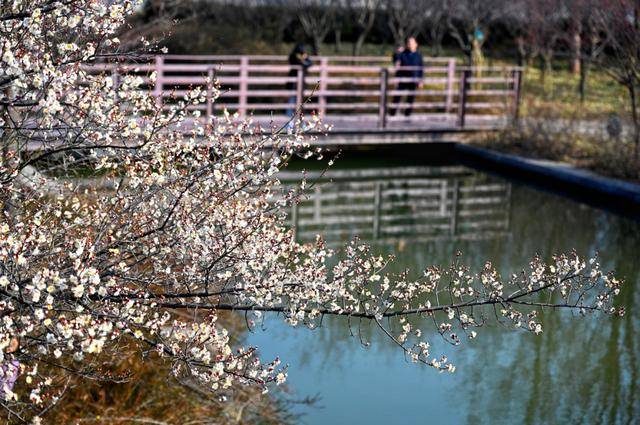 这里的红梅率先绽放,为湿地公园增添了春日气息。梅园临近人工湖,这里的湖光水色为赏梅更添清幽雅致的氛围。