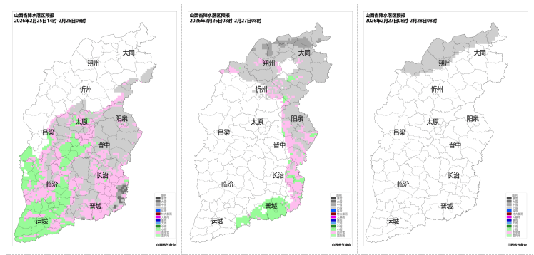 雨雪分布:大同、朔州、忻州、阳泉、晋中等地部分地区有 雨夹雪或小雪, 大同、朔州局部有 中雪; 长治、晋城、运城等地局部,还会残留 小雨或雨夹雪。