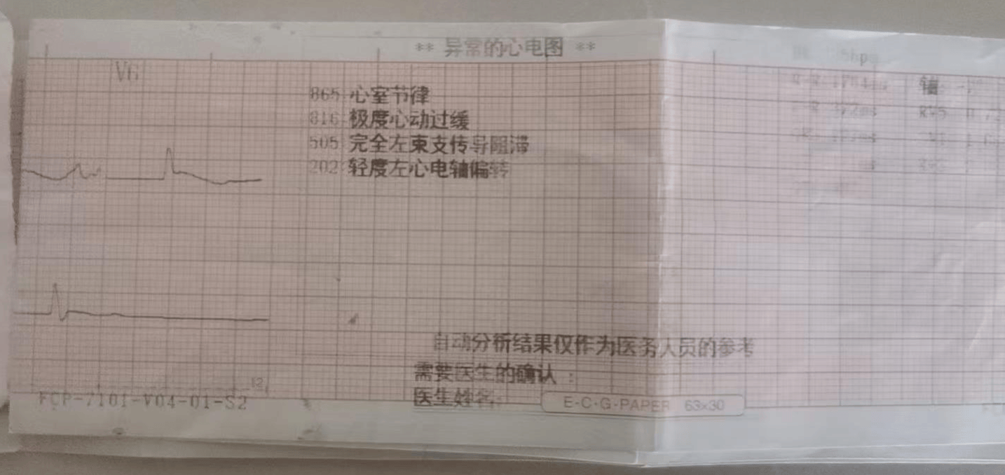 ▲心电图提示“极度心动过缓“