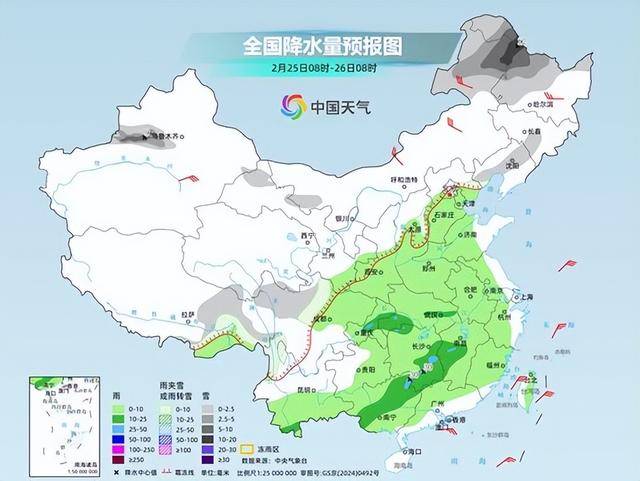 昨天,江南、华南等地雨水持续,局地出现弱雷暴,夜间起降水明显减弱。监测显示,24日8时至25日6时,新疆北部、黑龙江西北部、西藏东部等地部分地区出现小到中雪或雨夹雪,局地大雪;湖南东南部、广西东北部、福建南部等地部分地区出现中雨,局地大雨。