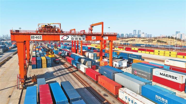 2月23日,繁忙的中铁联集郑州中心站。 近年来,中欧班列(郑州)保持高品质运营,业务覆盖40多个国家140多个城市,国际影响力持续增强。 本报全媒体记者 聂冬晗 摄