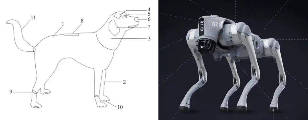 涉案电子狗发明专利和宇树科技Go2机器狗。