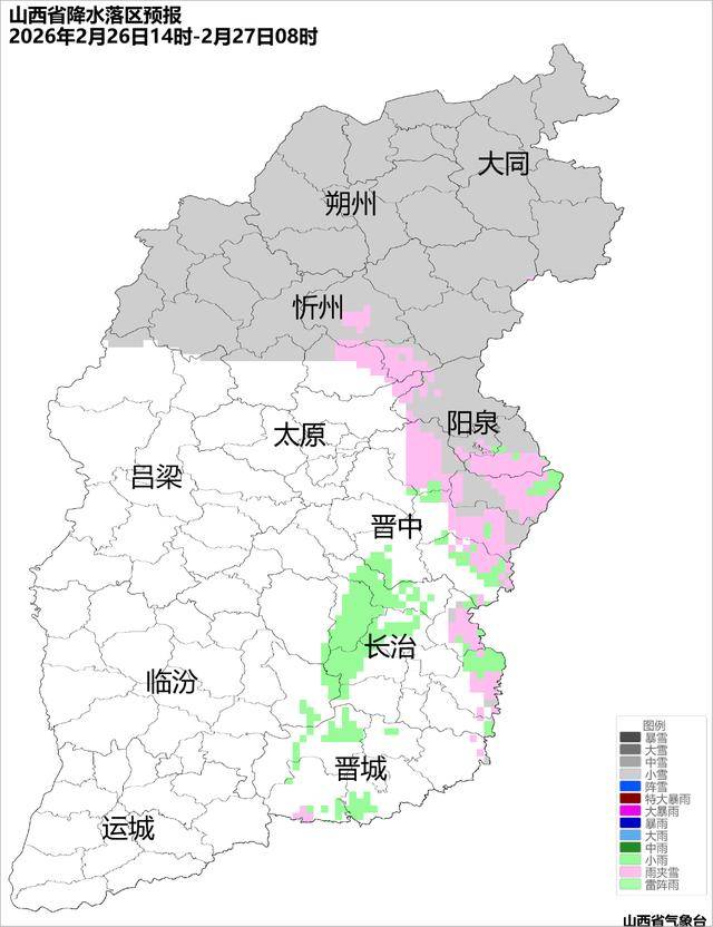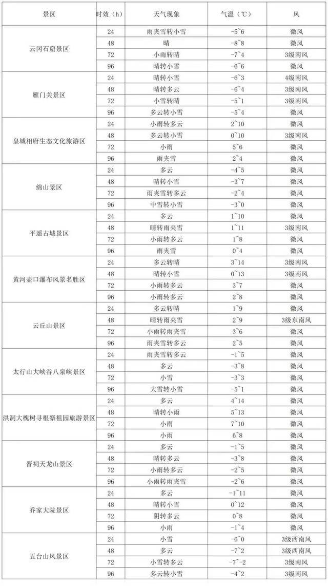 气象实况:全省多云,大同、朔州、忻州东部、阳泉部分地区有雨夹雪/小雪(局部中雪);晋中、长治等局部有小雨/雨夹雪。最高5~14℃,最低-7~6℃(太原0~8℃,晨起有雾),东风2~4级,体感湿冷。