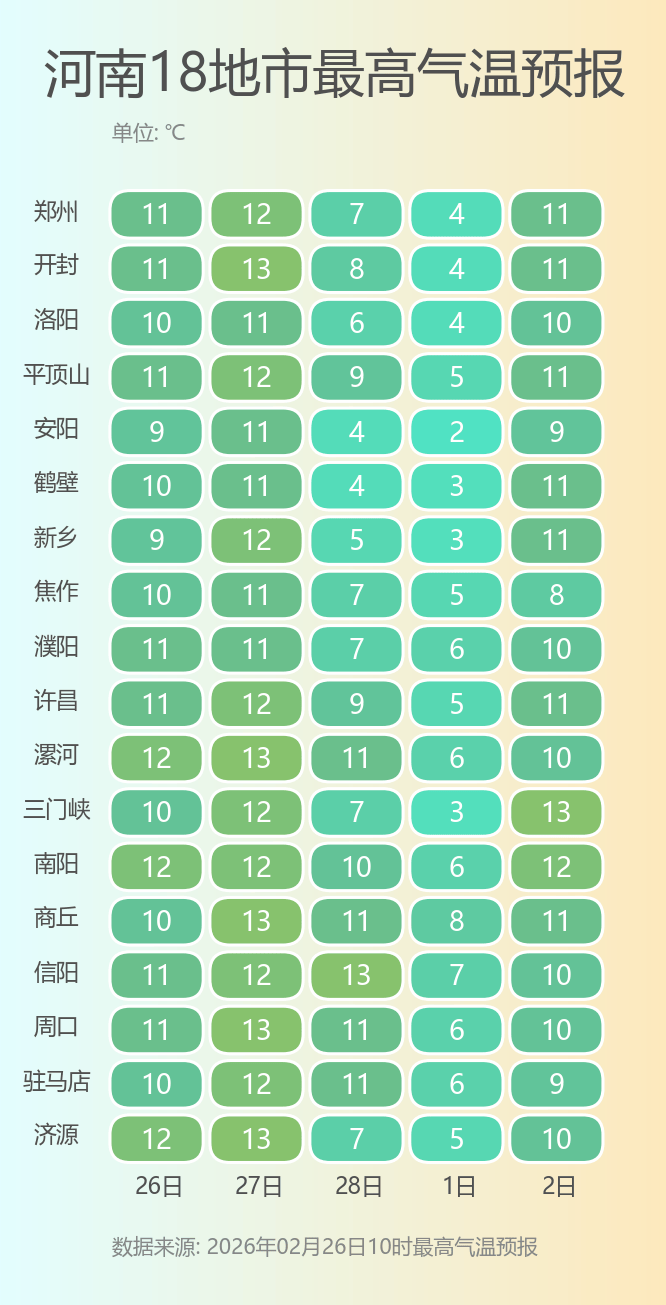 来源:河南省气象台2026年2月26日12时预报