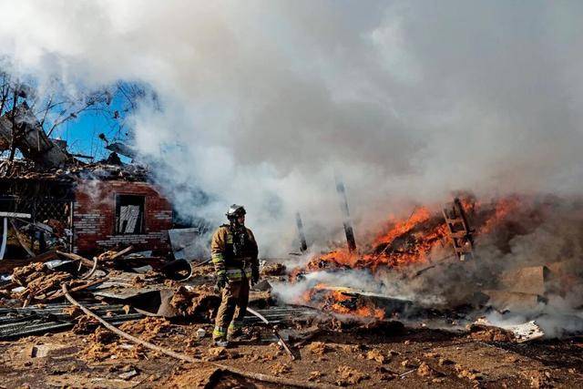 2月10日,顿涅茨克地区斯拉维扬斯克一处遭俄军空袭的居民区。本文图/视觉中国