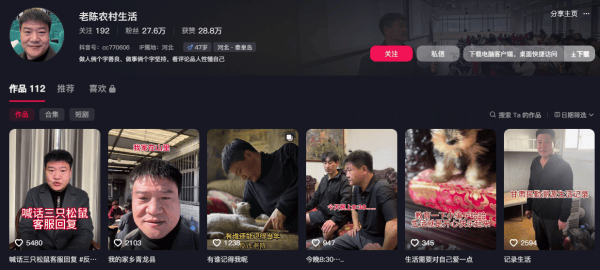 2月28日,搜索“老陈农村生活”,显示账号无异常。