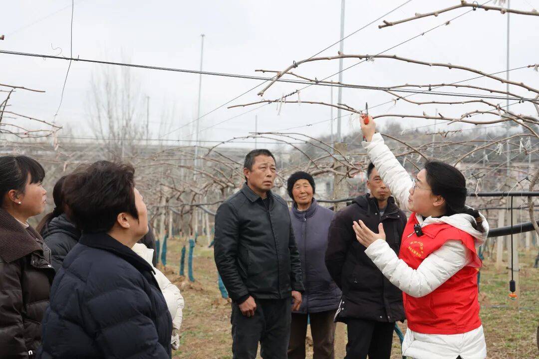 春回伏牛,万象更新。2月25日下午,西峡县五里桥镇黄狮村千亩猕猴桃改造提升示范基地内,县猕猴桃发展中心农艺师向围拢过来的种植户们讲解春管要领:“春季巡园要注意观察,对过密或断裂枝条进行复剪。”通俗易懂的讲解搭配实操演示,让现场果农频频点头记录。