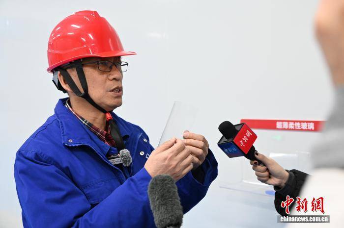 图为工作人员展示用于折叠屏手机的超薄柔性玻璃产品。马骏 摄