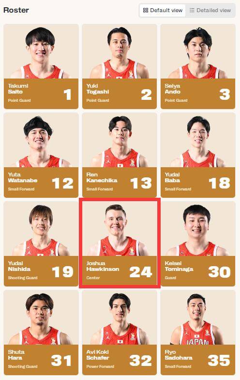 值得关注的是,日本男篮更新了他们的12人比赛大名单,霍金斯替换了科克,他将出战对阵韩国男篮的关键战。
