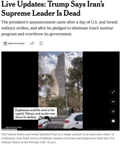 纽约时报》报道,此次对伊朗行动可能在伊朗以及更大地区范围内引发巨大政治变革。