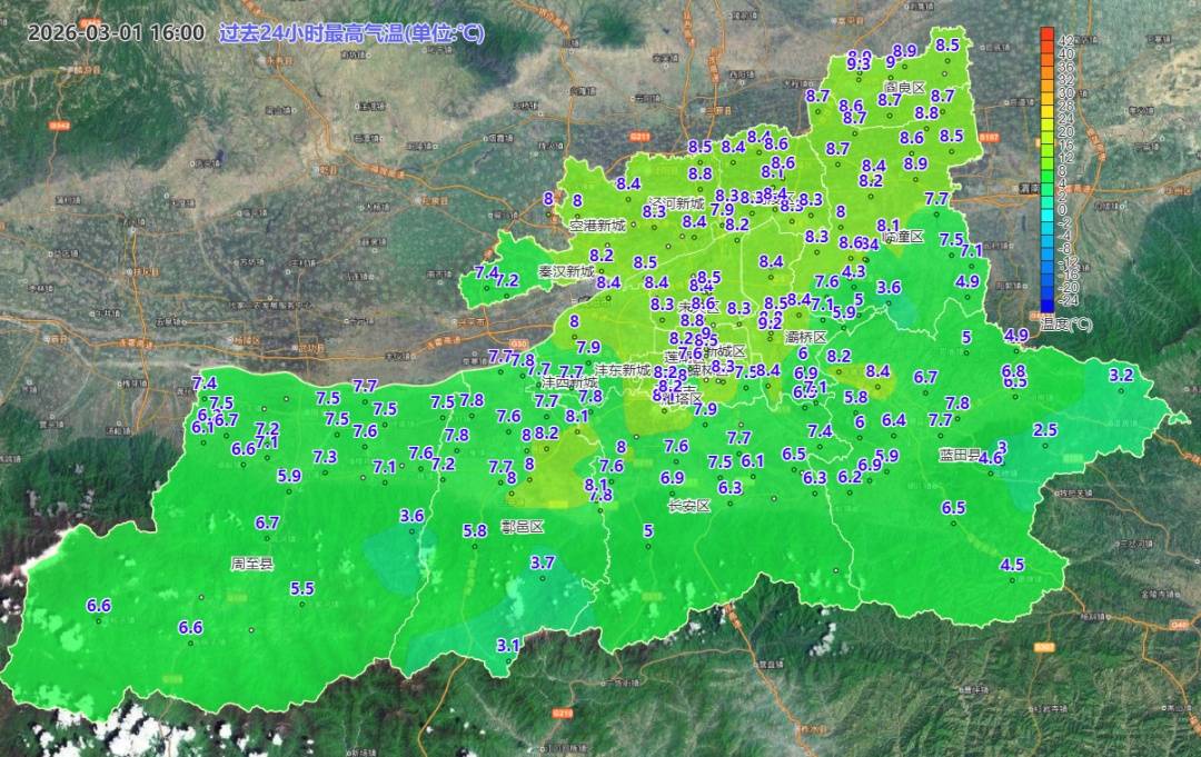 今天白天我市以阴有小雨天气为主,气温持续偏低,体感湿冷明显,户外活动需注意保暖。16时全市实时气温主要集中在2℃~6℃之间,城区最高气温为5.4℃(陕西宾馆站)。预计本轮降水过程将于今天傍晚前后自西向东逐渐结束。