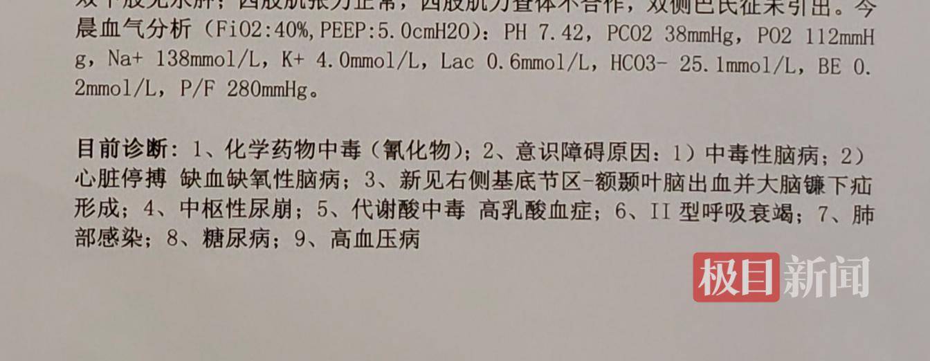 赵女士提供的父亲的病历显示,其被诊断为化学药物中毒(氰化物)。此外赵女士表示,1月26日在织金县鸡场乡曾有一位村民也因误饮燃料而离世,不过两次发生问题的“一条龙”服务并非同一班子。