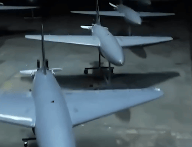 伊朗战略无人机加入作战编队。图片来源:视频截图
