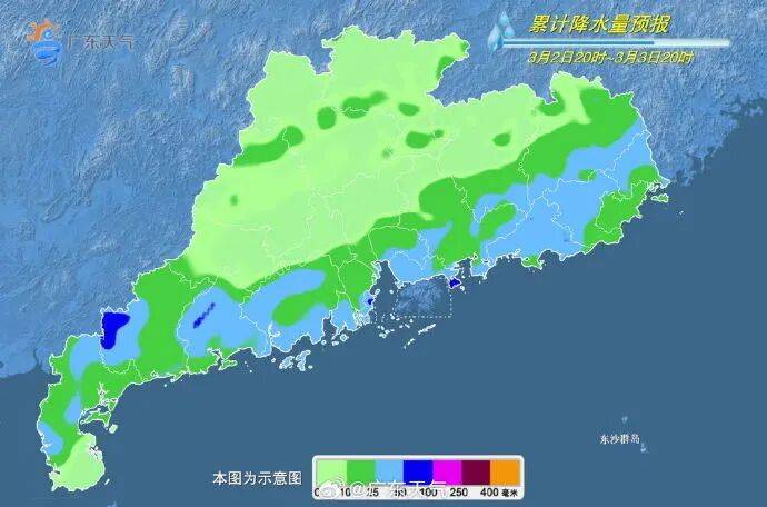 预计,2-3日,广东有中到大雨局部暴雨,部分市县伴有弱雷电、短时强降水和6-8级短时大风,4日降雨明显减弱。另外,2-3日,受冷空气和降雨共同影响,我省中北部市县日平均气温下降4-6℃,南部市县下降3-4℃。海陆交通注意安全。春季气温多变,注意适时增减衣物,预防呼吸道感染等疾病。