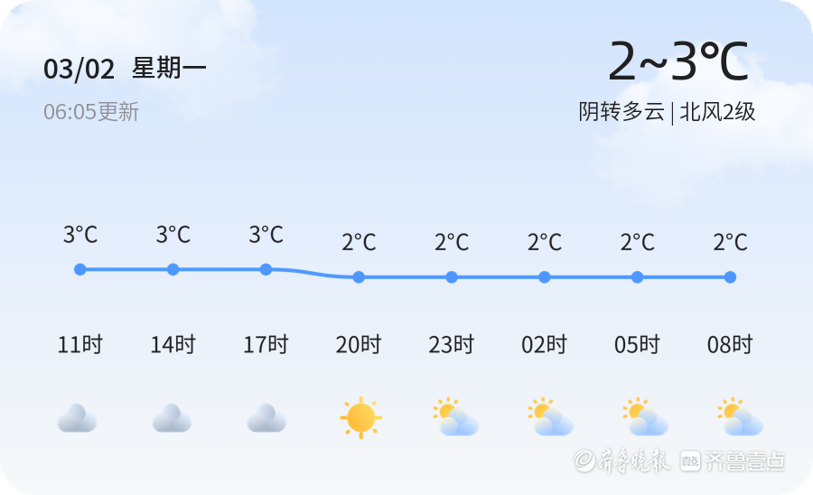 明天,滨州的天气将转为多云,气温较今天有所上升,最低气温为-1℃,最高气温为8℃。风力减弱级。市民需注意早晚温差较大,出行时适当增减衣物,以防感冒。