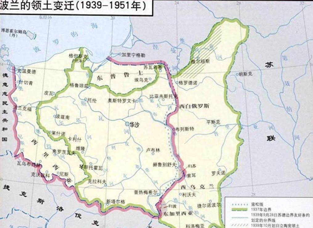 二战的时候,苏联占领了波兰的东部。二战结束后,波兰向苏联索要领土,结果苏联让波兰去占领德国东部作为弥补,至于波兰东部的领土,则被苏联分别分配给了白俄罗斯和乌克兰。