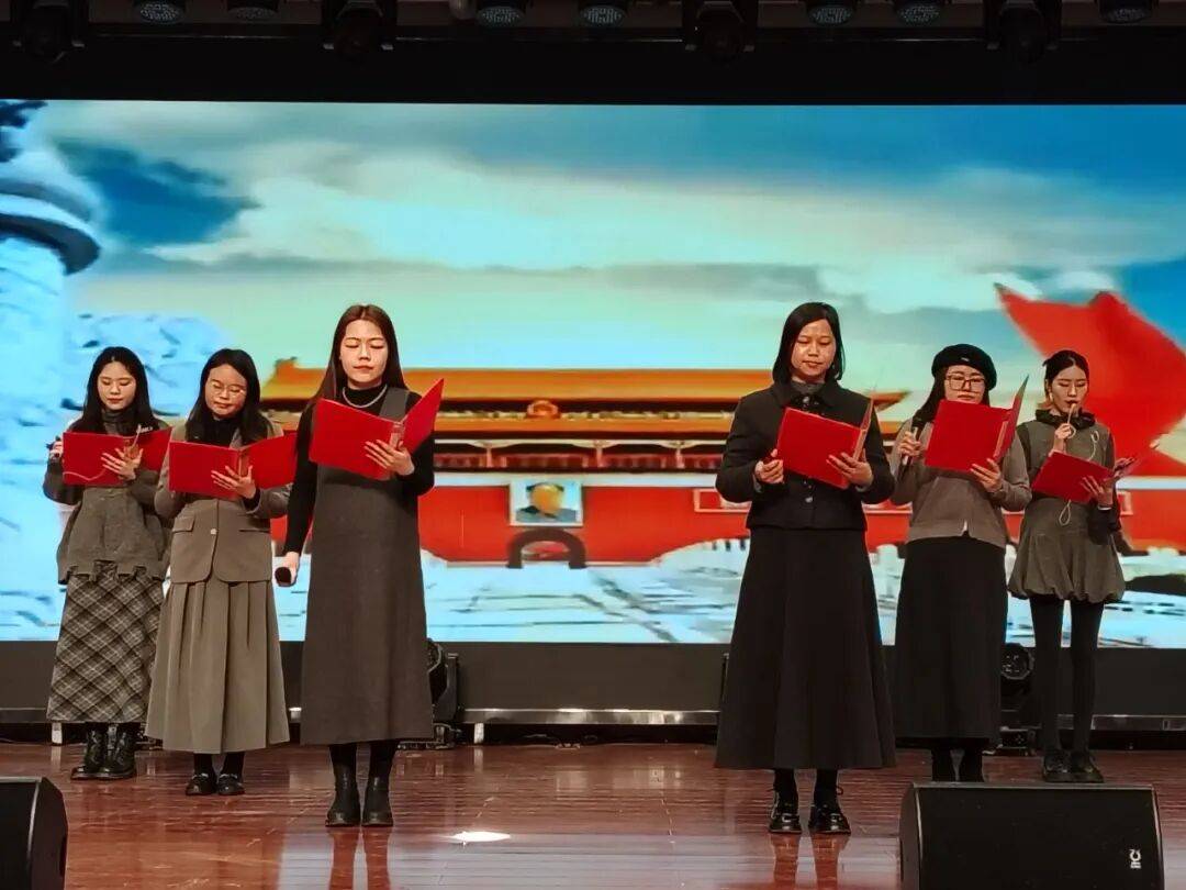 “在东方,有一条腾飞的巨龙……”高三语文组全体教师率先登台,带来诗朗诵《读中国》。他们以深情朗诵,带我们穿越文字的山河,感受血脉里的中国,将对祖国的深情融入字里行间,激荡着每一位观众的心。