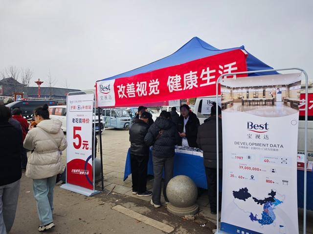 在艺人报到处,宝视达特别准备了2000副精美老花镜免费发放。同时,书会现场设立的“护眼补给站”也吸引众多群众驻足——专业验光车提供免费验光服务,防蓝光老花镜以惠民价格销售,工作人员还向过往群众发放明目贴、蒸汽眼罩、爱眼手册等健康礼品。